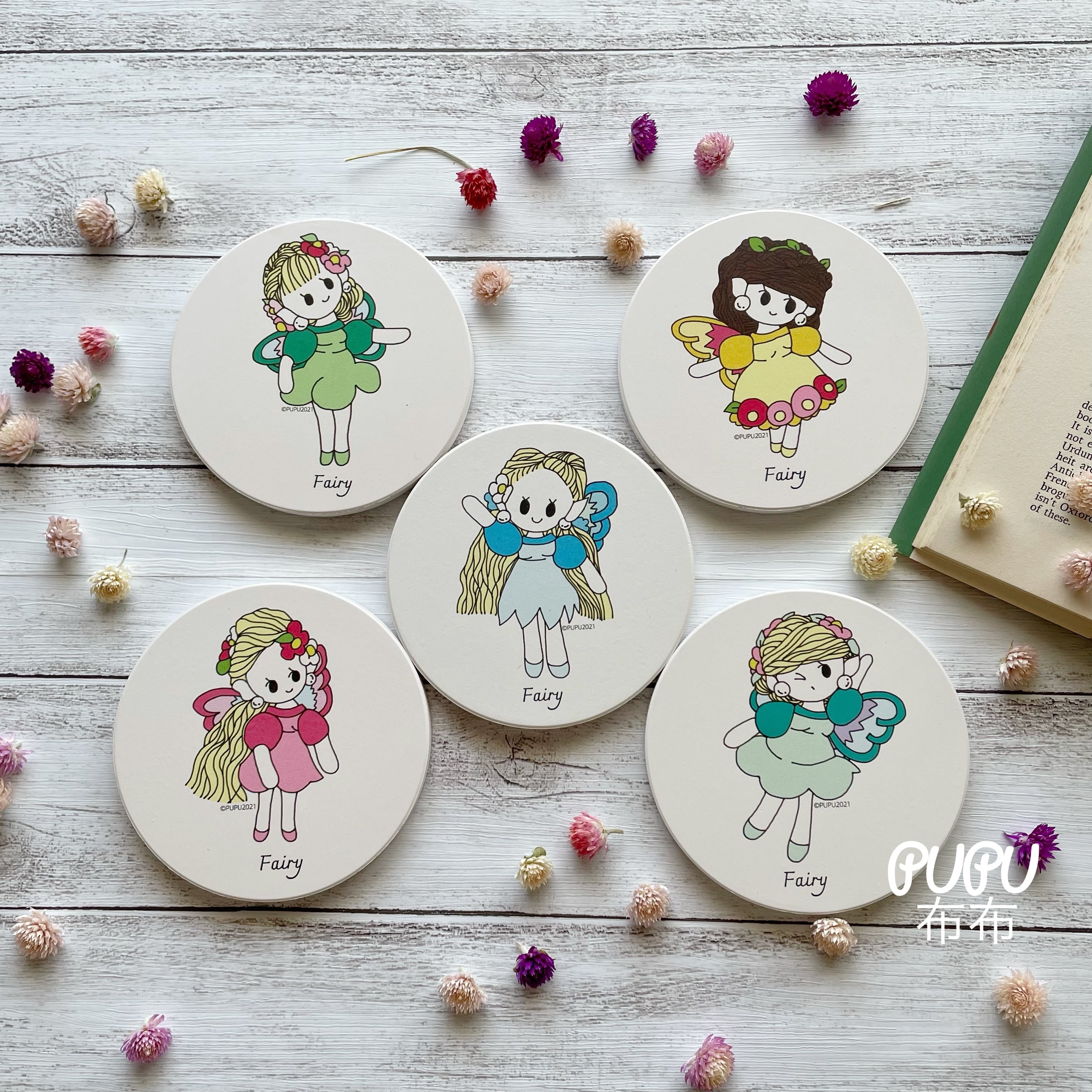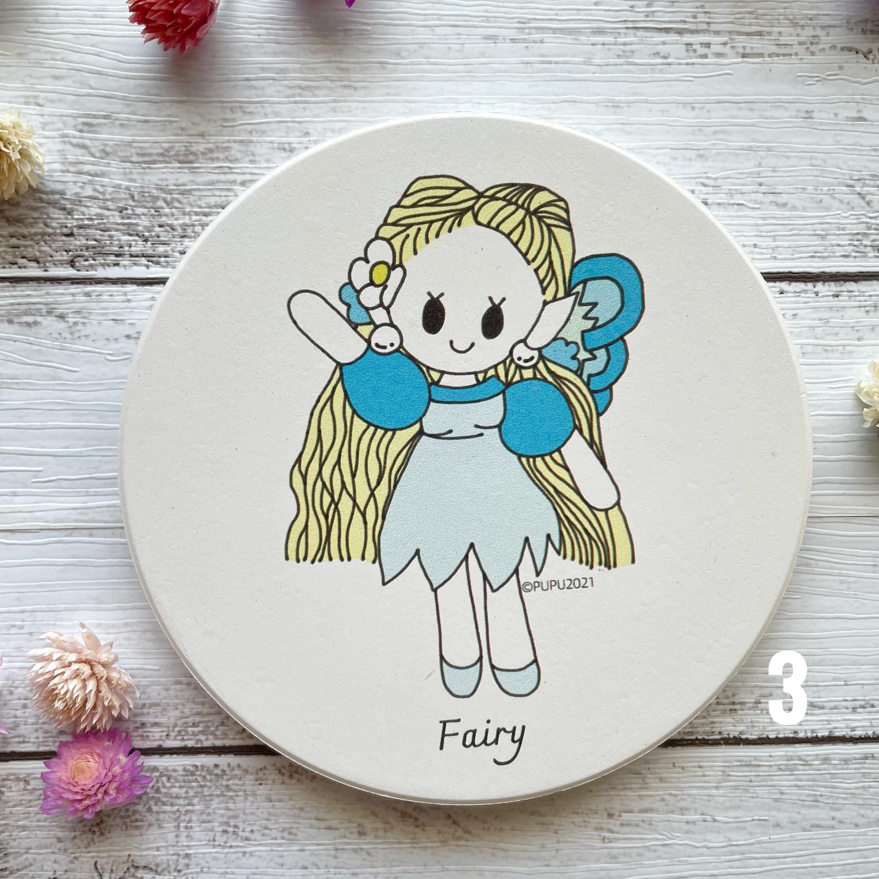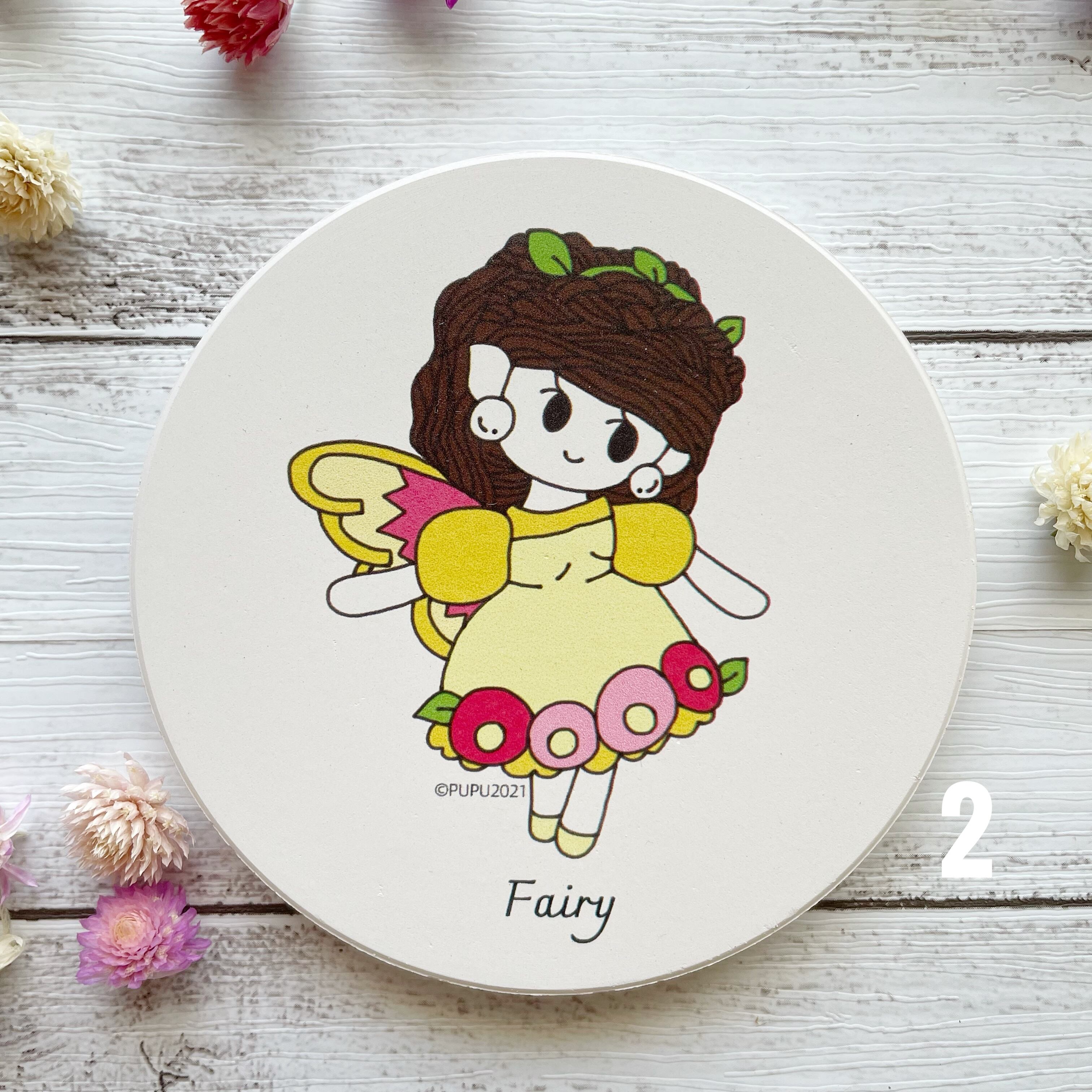 PUPU布布(ぷぷ)のあみぐるみから生まれた、オリジナルキャラクター「フェアリーちゃん」の白雲石入り吸水コースターです。